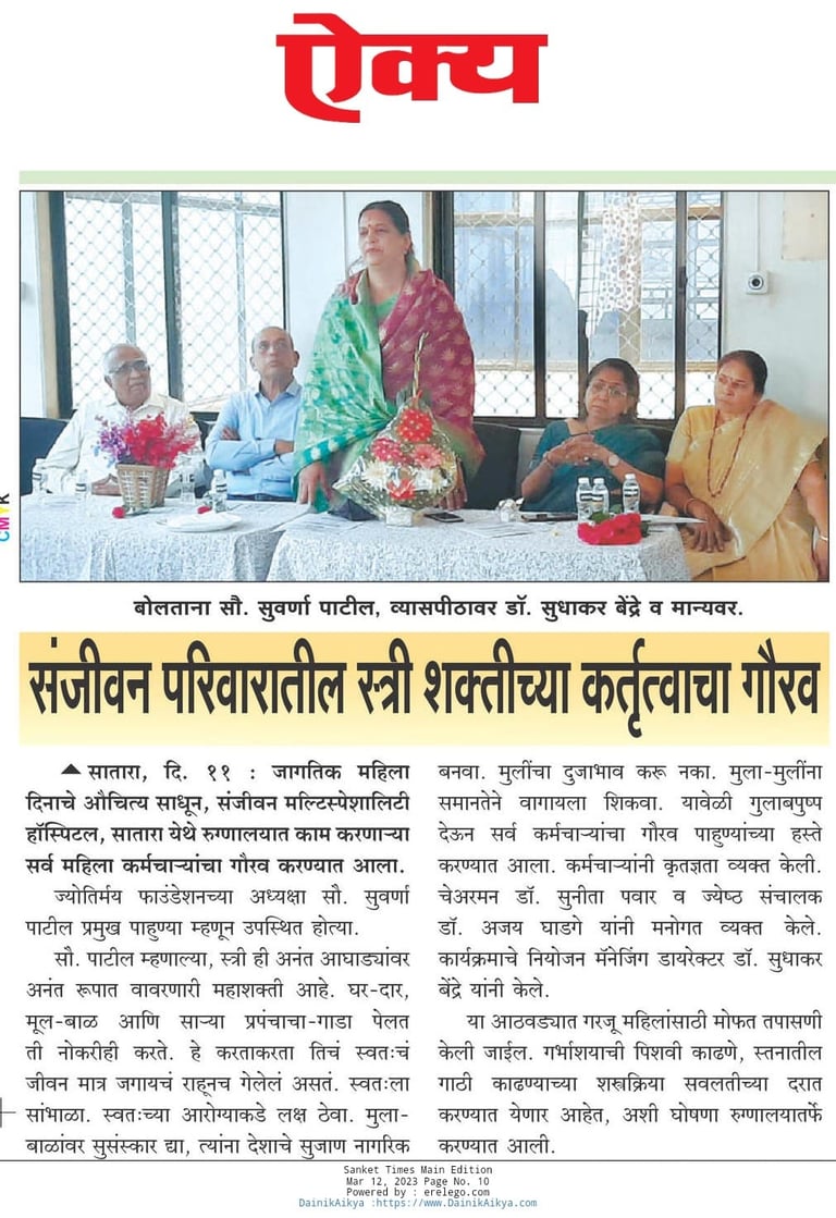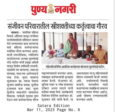 On the occasion of International Women’s Day, Sanjeevan Multi-Speciality Hospital, Satara organized a special felicitation ceremony to honor and celebrate the exceptional women employees whose dedication and service continue to inspire everyone at the institution.
