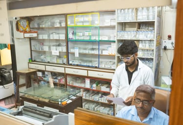 The photograph reflects our well-organized hospital pharmacy, where trained healthcare professionals work diligently to manage prescriptions, dispense medications, and support clinical teams. Our pharmacy is fully stocked with a wide range of essential, emergency, and critical-care medicines, ensuring uninterrupted availability for ICU patients, inpatients, and outpatients.