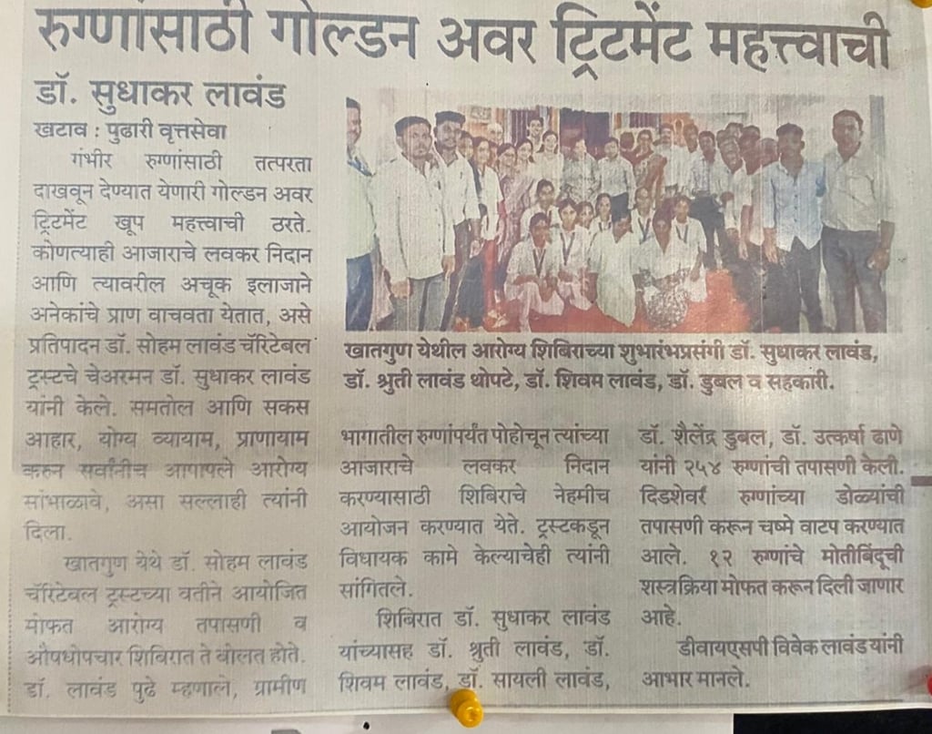 The Soham Lawand Charitable Trust, under the guidance of Dr. Sudhakar Lawand, recently organized a special health awareness and medical camp to educate people on the importance of the Golden Hour Treatment — a crucial period immediately following a serious injury or medical emergency when timely care can save lives.